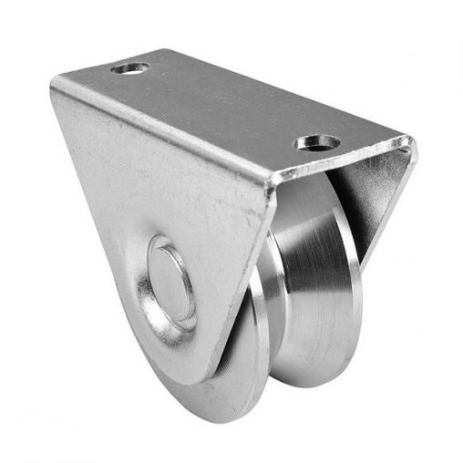 Колесо с внешним кронштейном для сдвижных ворот с V сечением. Диаметр колеса 80 мм. Колесо монтируется в нижнюю часть полотна ворот и легко движется по направляющей. Нагрузка на колесо 200 кг. В колесо встроен закрытый подшипник, колесо оцинковано.