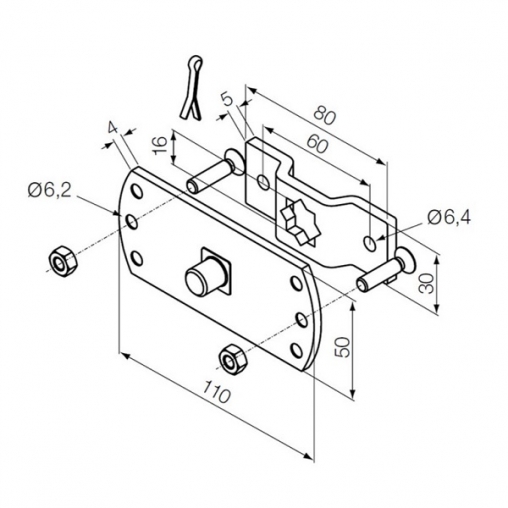 Крепление компактное 110Х50 штифт 16 мм + кронштейн с регулировкой поворота. Для приводов Nice LH с АРУ.