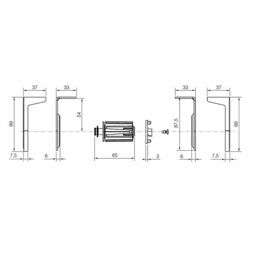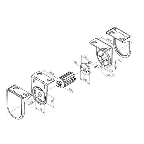 Комплект креплений, расстояние от стены до оси вращения 55 мм, макс 3 Nm. Может использоваться с капсулами 575.24801, 575.26000 или 575.25000, для приводов S.