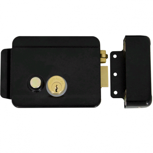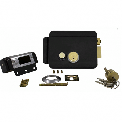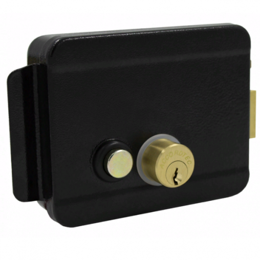 Электромеханический замок AT-EL101B, накладной, универсальный (дверь наружу, внутрь), ролик взвода пружины, блокировка ключом в закрытом состоянии, сталь, цвет черный, 12В.
